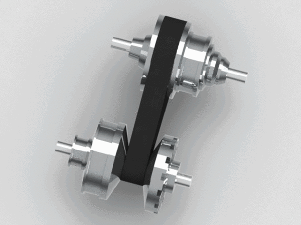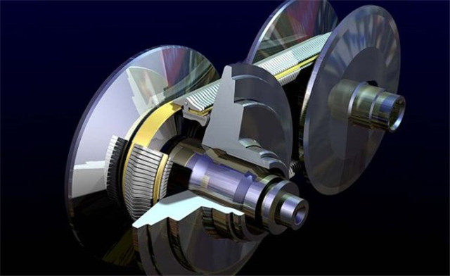 那么连续变化速比的关键就在于这个两组大小可变的带轮上了。在这两组带轮上,都分别有两个V型锥轮,两组共四个。如果想象不出样子的话,将它想象成雪糕桶就行,就是尖尖的,不过没那么长。这两组锥轮相对放置,并且由电脑程序控制运动。