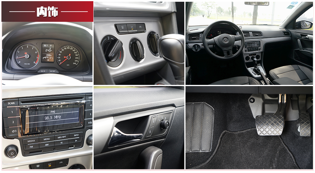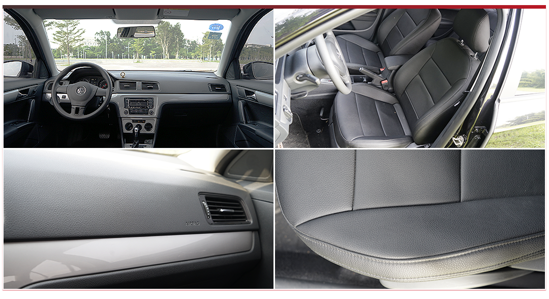评测车型为2015款自动舒适版,加装了皮质座椅,其他方面均为原装。从中控台上看,除了方向盘外全是硬塑料,而且能一眼就看出来,材质比较差。但整体的拼装做得挺好,没有明显裂缝,这在同级别车型中确实做得比较好的。