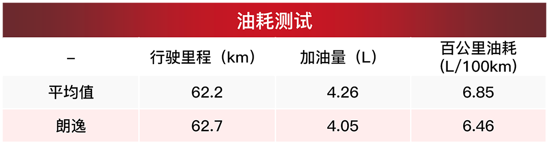 虽然动力数据很一般,但是朗逸的油耗表现却非常好。测试距离为61.9公里,其中高速路段为26公里,总共消耗燃油4.05升。