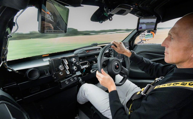 此外,由于目前骡车的内饰并没有完成,所以像按键式换挡、全液晶仪表盘、中控液晶屏幕都处于临时位置。唯一可以肯定的是,新车将会采用和迈凯伦F1相同的三座布局,也可以看作是向传奇致敬。