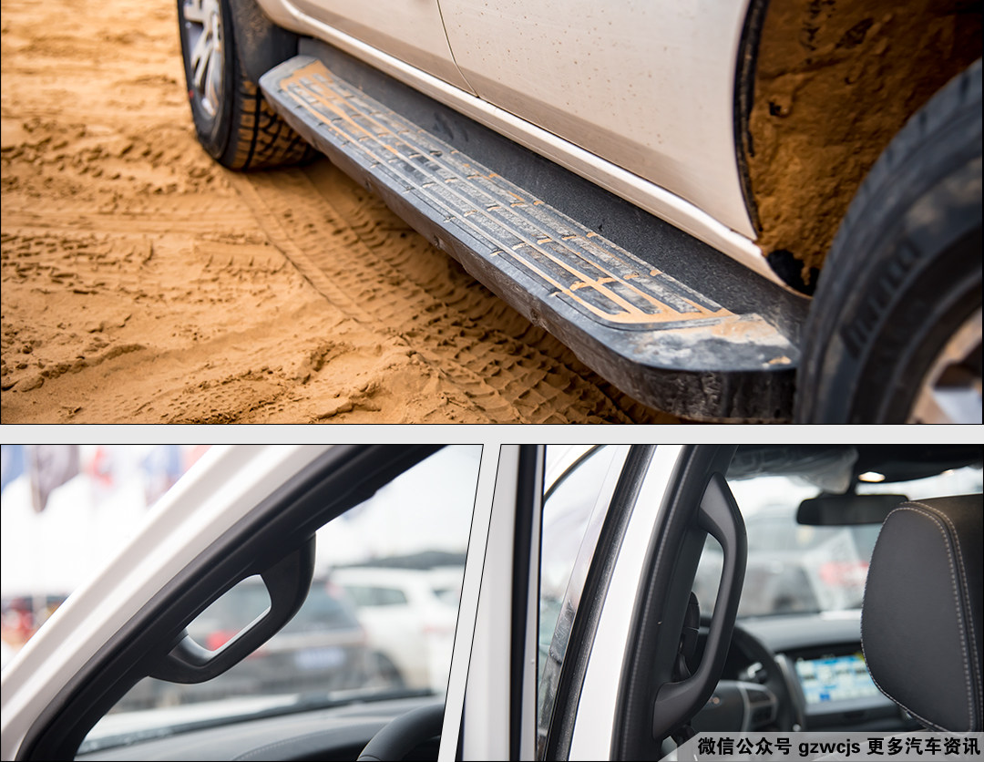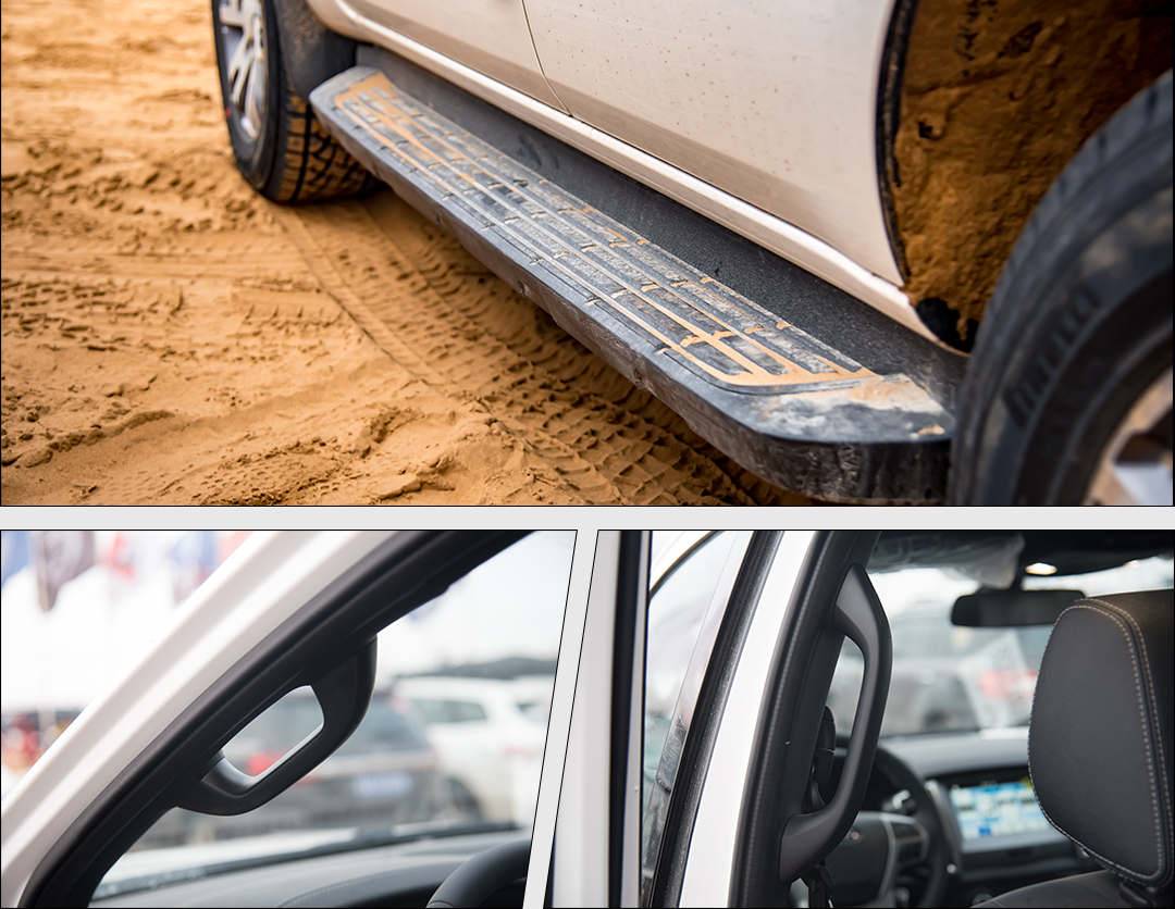 外观内饰部分先不说,毕竟撼路者上市已经快到两年了,大家也不陌生了,不过一上车还是吓了一跳,果然是硬派SUV,上车方式就是不一样,227mm的离地间隙,就算是175cm高的成年男性也无法直接上车,不得不依靠踏板和A柱的扶手。