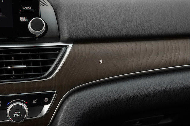 十代雅阁是第一台带有NFC功能的汽车,这意味着你上车的时候,不用先花五分钟对着手机设置蓝牙,只需要轻轻碰一碰,就可以连接手机各项功能。