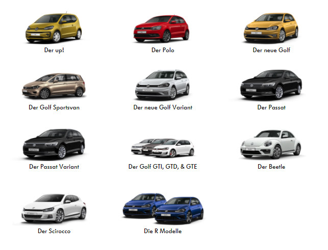 (德国大众官网清晰的轿车目录,产品线远没有国内丰富)