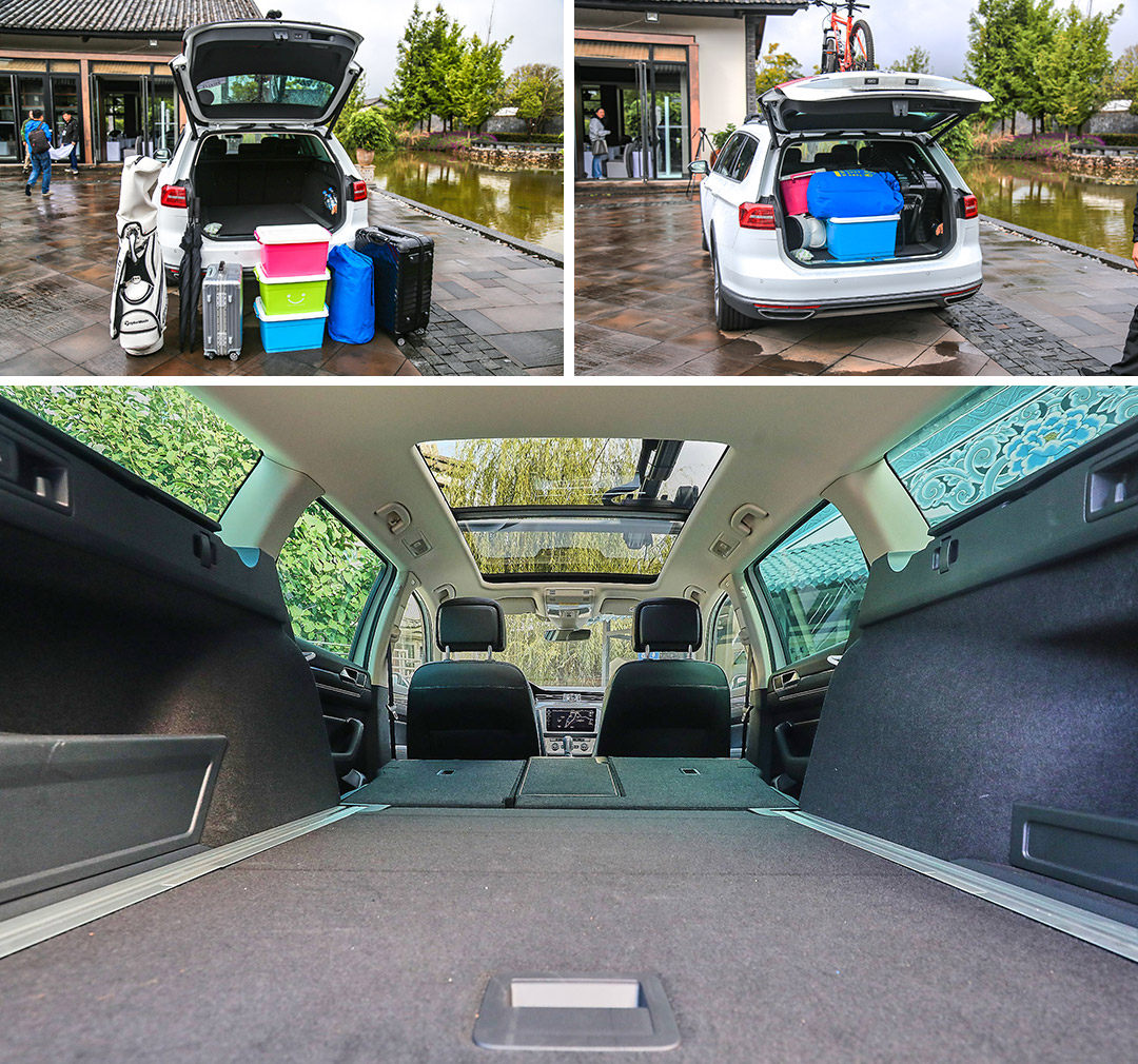 再远的旅程也有终点,当你停车驻足,蔚揽宽大的车内空间能够容你小憩一会,放倒蔚揽的后排座椅之后行李厢容积能够达到1780L,平整的地板就是一张标准的双人床,即使在常规状态下650L的行李厢容积也比三厢轿车大得多;当你站在车外,蔚揽优雅修长的侧身会让你陶醉,Alltrack四驱套件版本黑色的裙边和银色的后视镜更加凸显蔚揽的野性和运动,当然不止是看起来更运动,四驱系统加身的蔚揽在面对一些简单非铺装路面时也能应对,当然跟SUV比还是有差距,不过下下河滩走走土路是完全足够了。