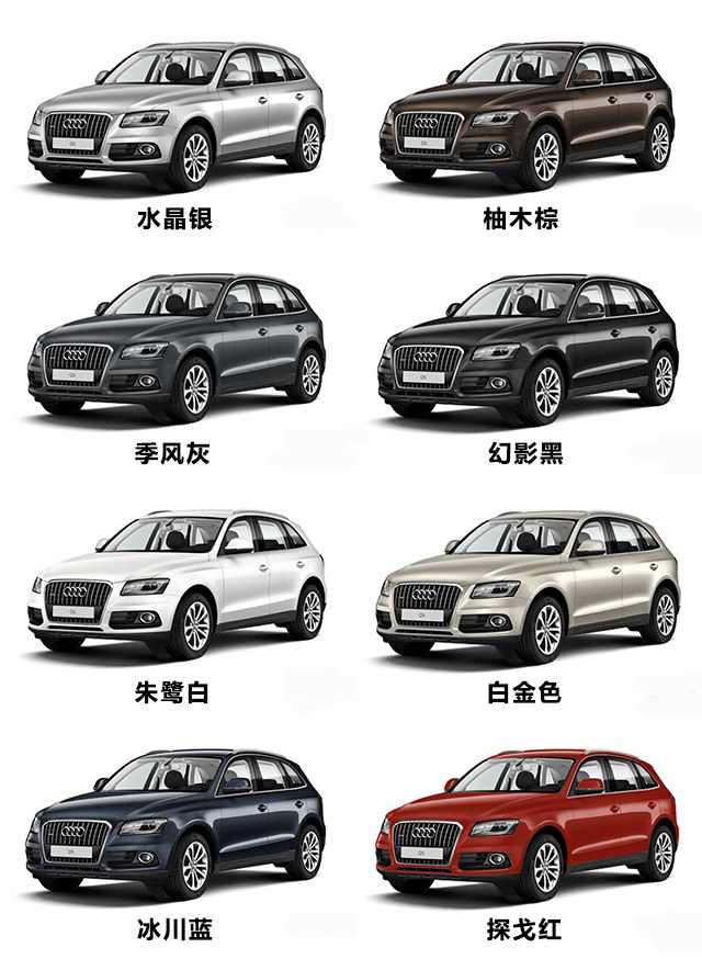 来看下颜色方面,Q5提供的还是挺多的,有八款颜色选择,教授觉得柚木棕和白金色是比较不错的选择。