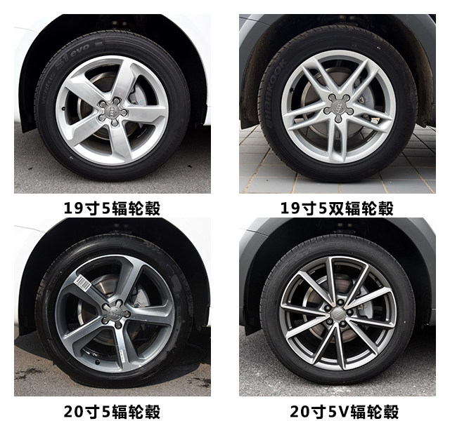 现款在售Q5全系共有5个车型,而轮毂就有4款,轮毂大小从19寸打起,毕竟一辆中型SUV配小脚,那是很难看的。19寸5辐轮毂是在配备在最低配的进取型上的,19寸5双辐轮毂则是技术型和舒适型共享,20寸5辐轮毂是动感型上的,还有个20寸5V辐轮毂就是顶配的豪华型上的。