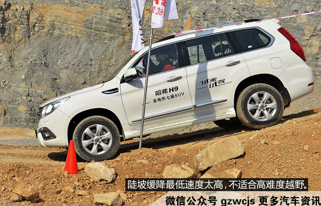 再来说说这个陡坡缓降系统,实话说,H9的这个东西和揽胜的差距还是非常大的。首先,这套系统在揽胜上可以用极低的速度慢慢走下坡,而且对车体动态控制非常精准。但在H9上,这套系统的最低运行速度是时速8公里,在下陡坡中,如此高的速度意味着驾驶者还是得自己控制车速,而且H9对于车体动态的控制精度也远不及揽胜。但事情要这么看,揽胜可是百万级别的车,H9仅30W不到,总不能要求这么高吧?