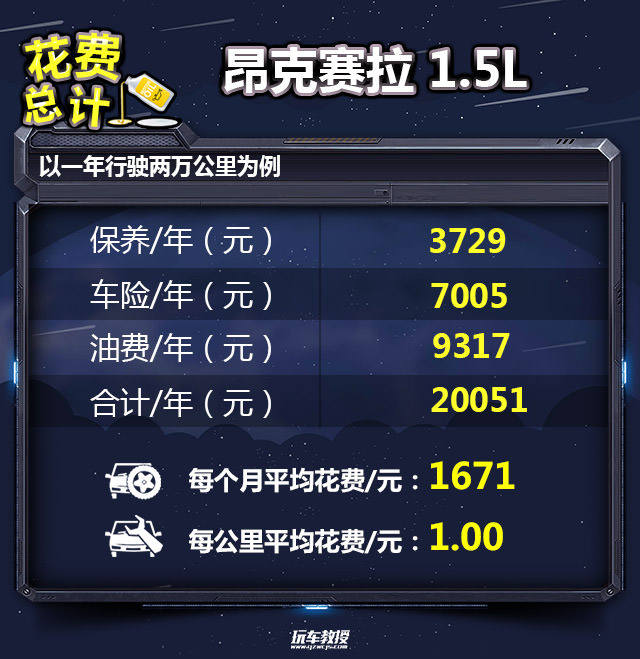 教授总结:正如其它的马自达车型一样,昂克赛拉的保养费用并不便宜,小保养需要613元,6万公里保养总费用为手动挡10874元,自动挡11188元。不过创驰蓝天技术的发动机,在油耗的表现上挽回了不少的分数,1.5L自动挡车型平均油耗百公里是7.2L,2.0L自动挡车型平均油耗百公里是8.0L。1.5L车型的年花费是20051元,月花费是1671元;2.0L车型的年花费是21475元,月花费是1790元,两排量之间相差不大,作为家用车来说,这样的费用支出还是比较合适的。