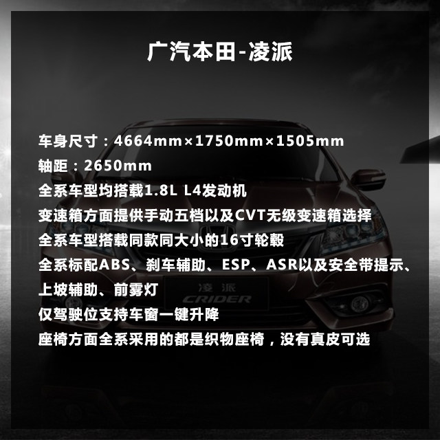 轮毂就牛逼了,古时有英雄一剑走天涯,现有凌派一轮配全系。不用看什么配置,什么车型了,本田给你全按16寸一模一样的轮毂。