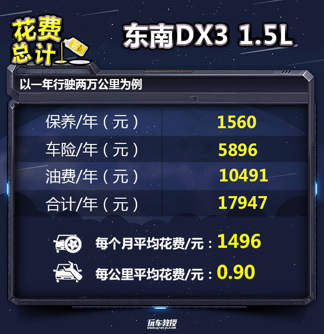东南DX3自发布以来,获得了不少消费者的亲睐,6.79万元的起售价,全系标配后独立式悬挂,这显然要比一众的合资和国产品牌良心不少。东南DX3共有1.5L和1.5T两种发动机,虽然是同等排量,但是养车成本上会有所不同。下面,教授就为大家计算东南DX3的1.5L和1.5T车型的养车费用。