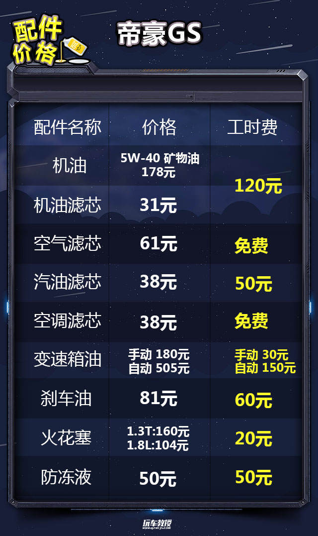 帝豪GS上市以来,市场关注度一直都是很火爆。它的外观、内饰设计都展现了较高水准,可以说10万内的合资车型在帝豪GS面前都黯然失色。下面,教授带大家看看帝豪GS的养车费用怎样!