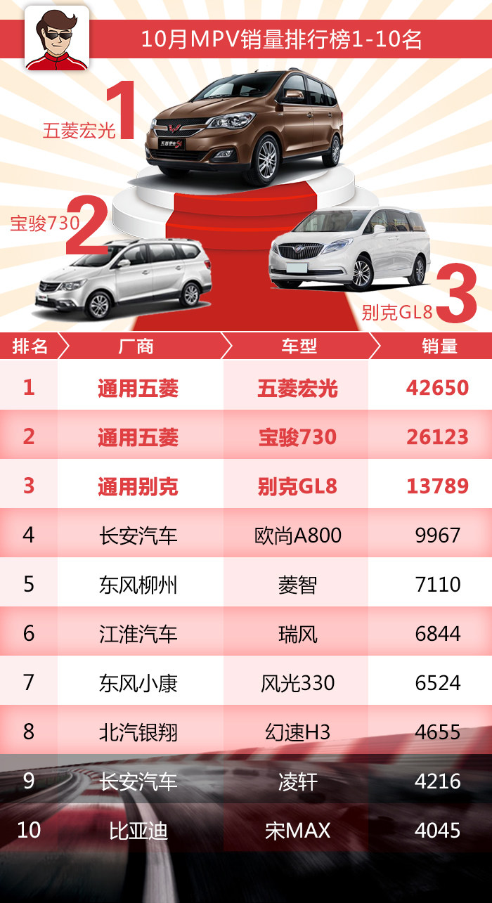 宝骏730九、十月的销量成绩都不错,今年至10月销量已经超过20万辆,紧跟前辈五菱宏光长期霸占冠亚军。
