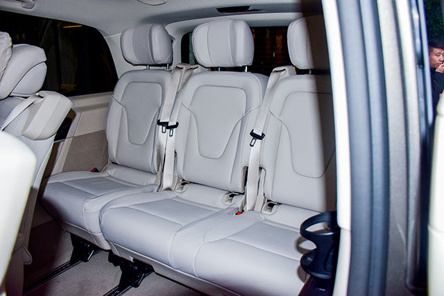 奔驰V级分为标轴版和长轴距版,教授此次试驾的是V级的标轴版本V260,车身尺寸为5140*1928*1920mm,轴距达到了3200mm。采用了2+2+3的7座布局方式,无论是第二排还是第三排都拥有着宽敞的空间表现。长轴版本的车身比标轴版加长了230mm,轴距达到了3420mm,即便是不放倒第三排座椅,后备箱的空间仍然比较出色。从现场的体验上看,教授对奔驰V级标轴版和长轴版本的空间表现还是满意的。