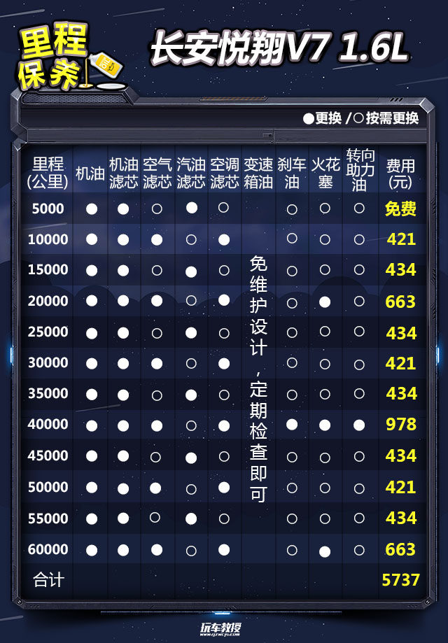 教授总结:从保养分析结果来看,长安悦翔V7 1.6L进行一次小保养需要的费用为421元,三年6万公里的保养费用为5737元。以关注度最高的车型为例,1.6L 手动乐尚型 国V一年行驶两万公里的保养费用为1912元,用车成本为18101元,算下来,每个月需要花费1508元;1.6L 自动乐动型 国V一年行驶两万公里的保养费用为1912元,用车成本为19760元,每个月需要花费1647元。总的来说,悦翔V7的整体用车成本不高,家庭代步很不错的选择。