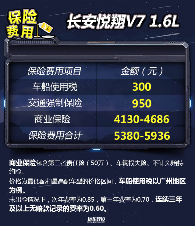 说到长安汽车,第一个想到的车型大概就是CS95了,不过这次的主角不是它,而是长安悦翔V7。从价格上来看,悦翔V7是一台性价比很不错的车子,较大的空间体验和不错的行驶质感,大部分车主对它的评价也是很高的,关注度也水涨船高。这次教授就以悦翔V7 1.6L车型为主角,为大家介绍一下它的养车费用吧。