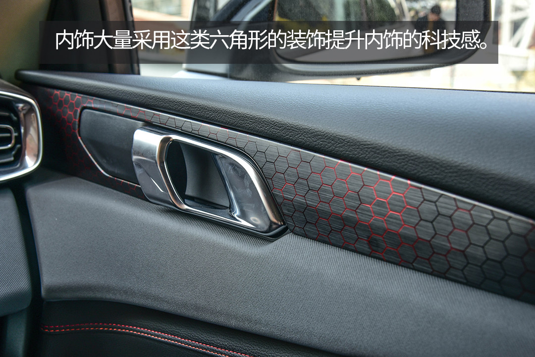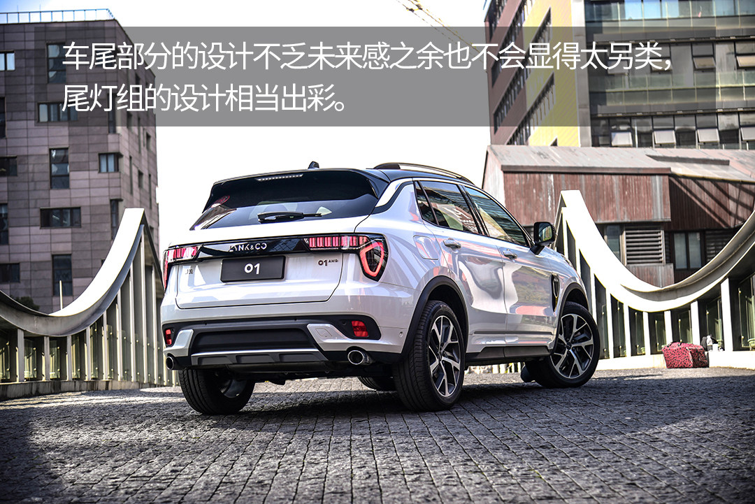 与现在不少SUV都努力通过一些大手笔的线条营造夸张的肌肉感不同,领克01的车身线条显得更紧绷,车身比例和车轮的比例等都比较协调,整体更扎实也颇有欧洲车的风范。整车长度4512毫米,轴距2734毫米,在同级里面尺寸并不算很大。不过领克01也并不是使用大尺寸大空间这种简单粗暴打开销路的车型,而是卖性格卖格调,反而给人的感觉会更讨好。