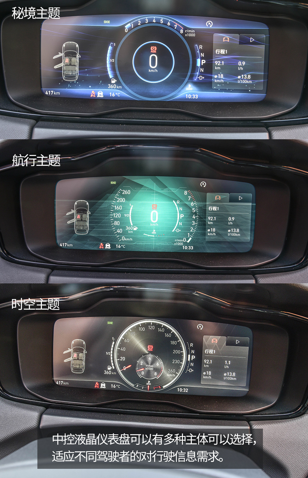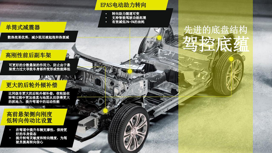 不过在遇到一些乡间小路和省道等道路铺设并不优秀的路面,有连续大小不一的颠簸路段和起伏路段的时候,这套避震设定就不能很好的处理这样的状况。车身随路面的震动的变化会显得相对较“颠”,避震并不能将车身和路面隔绝开来。而且19寸的轮胎由于扁平率并不高,因此对路面震动的过滤能力也相对较差。和工程师沟通过程中,对方表示由于车身重量较大和重心较高的问题,假如将避震做得更软,会增加车身的晃动和不安定感反而造成舒适性的下降,现在这种设定反而是最平衡的取舍。不过,厂家表示低配车型将配18和17寸的轮圈,而车胎的外径不会变化,也就是胎肩会更厚一些,吸收这种震动的能力也更强。虽然没能驾驶装备小尺寸轮圈的型号,不过对舒适性有要求的车主可以考虑一下低配的型号。