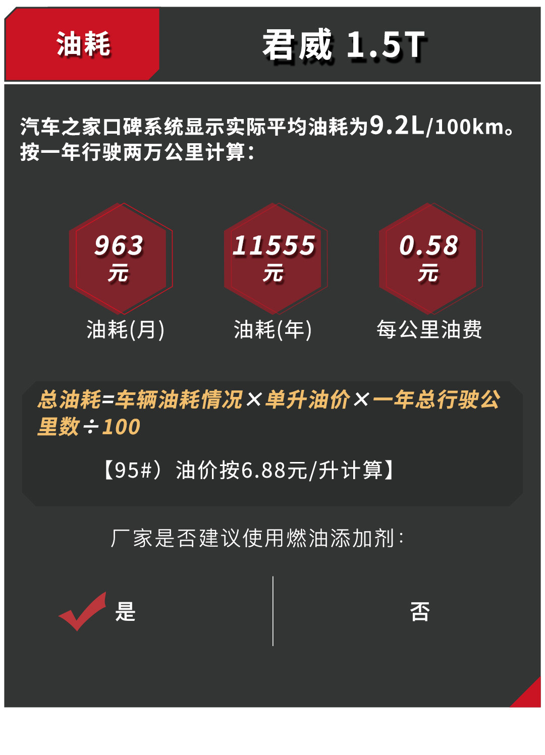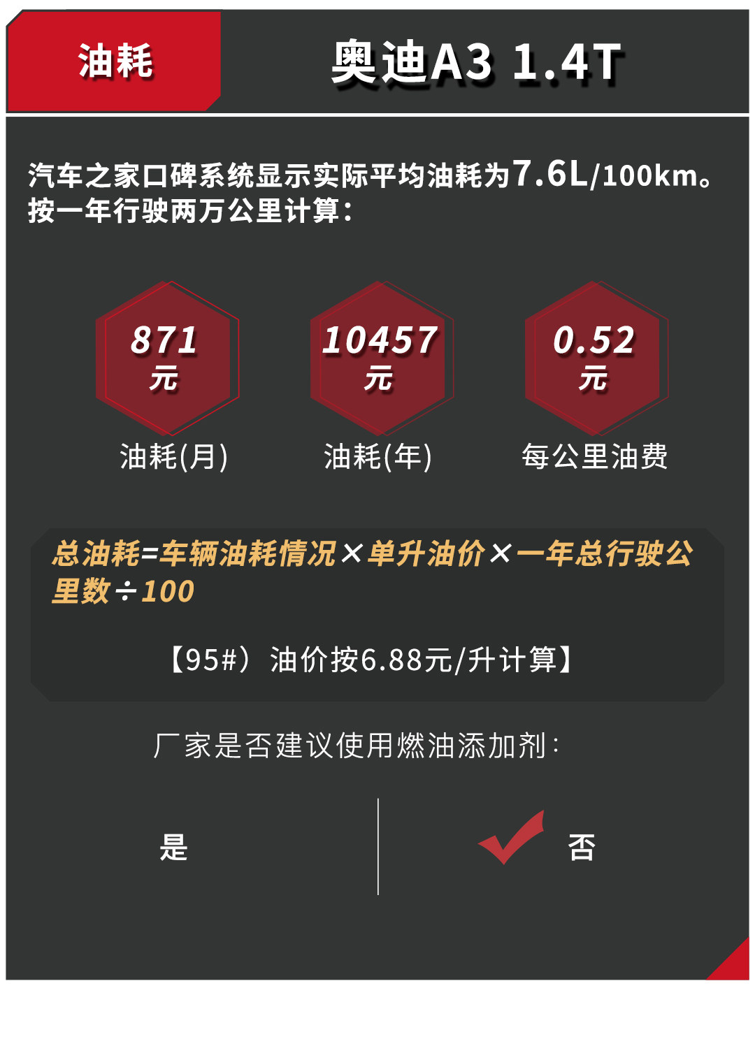 由于君威体型较大,而且比A3重,油耗相对而言较高,而且需要使用添加剂,所以在用车成本上相比A3增加一笔。