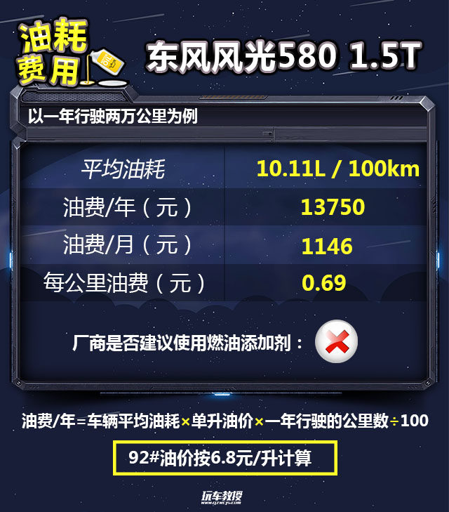 东风风光580是一款关注度比较高的7座中型SUV,自从上市以来销量稳步增长,10月份的销量更是接近2万台,它拥有丰富的配置,较低的价格和时尚的外观还有大空间,对于注重实用和性价比而且需要7座车型的消费者来说这是一个很好的选择,这些都是它热销的原因。那么它的用车费用到底如何呢,让教授为大家好好计算一下