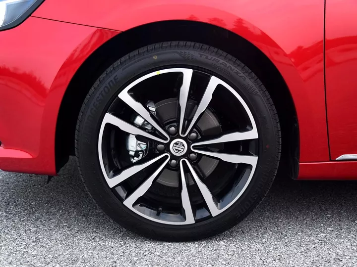 本次试驾的Trophy顶配车型选用视觉效果出众的18寸铝合金双色轮毂,轮胎选用普利司通泰然者系列,花纹、轮胎配方、材料均为个性化定制,尺寸为225/45 R18,单条成本上千元。(低配车型选用米其林浩悦3ST R17、高性能版车型选用普利司通搏天族R18运动轮胎)