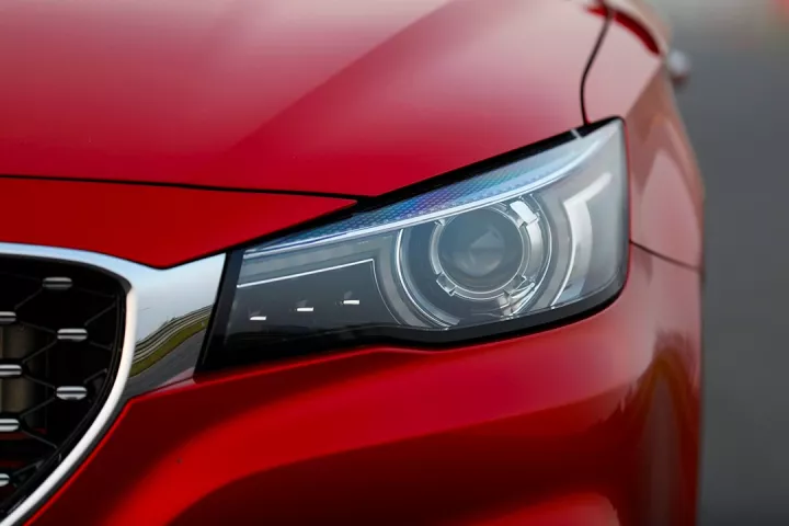 大灯设计灵感源于伦敦眼在泰晤士河中的倒影,传承全新MG家族符号,点亮效果与马自达“勺子”大灯颇为相似。大灯下方为车上不为多见的转角元素,官方称为“感性之刃”。(远近光智能切换功能目前仅出现在Trophy车型)