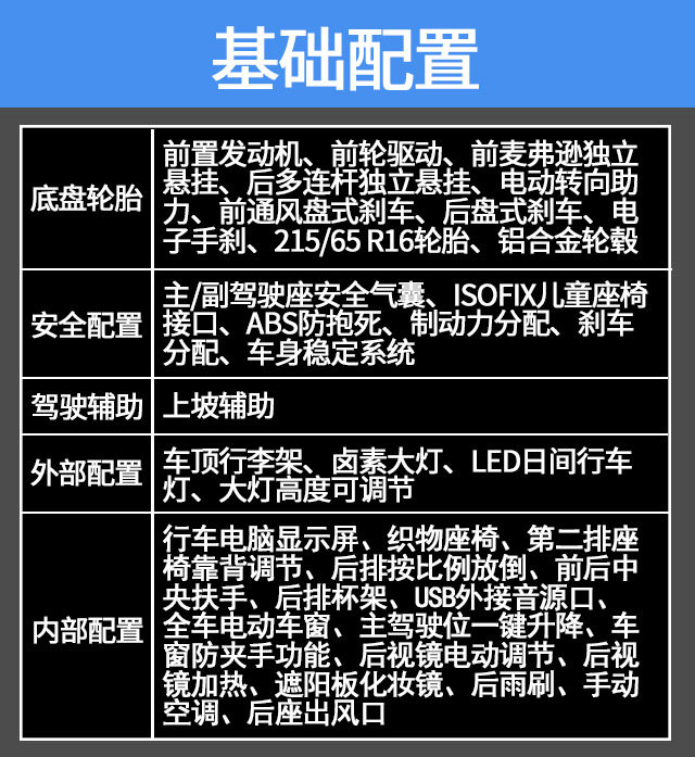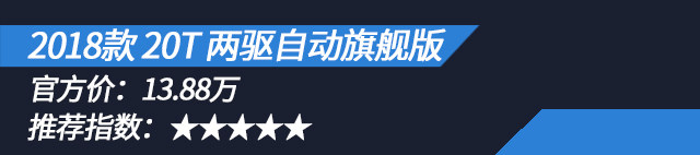 20T旗舰版在基础配置上增加了胎压监测、前排侧气囊、无钥匙启动/进入系统、自动驻车、陡坡缓降、全景天窗、车顶行李架、真皮多功能方向盘、定速巡航、后倒车雷达、倒车视频影像、仿皮座椅、主驾驶座电动调节、腰部支撑、转向辅助灯、前雾灯、后视镜电动折叠、8英寸中控大屏、手机互联、车载蓝牙电话、6声道扬声器。这个配置比起便宜9千的豪华版升级了无钥匙启动/进入系统、全景天窗、车顶行李架、主驾驶座电动调节、腰部支撑。这些配置里无钥匙启动/进入系统、主驾驶座电动调节、腰部支撑都是日常经常用到的配置,后期也基本不能改装,所以不妨多花点钱一步到位。比旗舰版贵了5千互联智惠版,配置上多了座椅加热、自动空调、空调分区控制、自动头灯、车内氛围灯、10.4寸互联网大屏和8声道扬声器。但是缺取消了主驾驶座电动调节、腰部支撑这两项日常经常使用的配置。如果互联智惠版轮胎能够换成235/50 R18,那会比自动旗舰版更加值得推荐,可惜的是,他还是那套215/60 R17的轮胎。