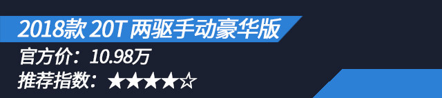 20T手动豪华版跟低一级和高一级的配置差价都是1万块。比起低一级的精英版,豪华版的轮毂升级到了17寸、同时也有了备胎,在辅助配置方面,多了倒车视频影像和后倒车雷达。而且内饰方面也有了一个中控屏,连带有GPS、蓝牙电话和手机映射功能让豪华版比精英版在实用性上强不少。扬声器升级为6声道也算不错的提升。贵一两万的旗舰版和互联版,他们增加了定速巡航、前排侧气囊、全景天窗和车灯方面的配置。这些配置的增加在实用性方面不是很强,不值得追求性价比的人群选购。