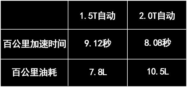 可以看得出,2.0T的动力比起1.5T提升并不大。10%左右的加速性能提升,多出30%的油耗,无论怎么想,都是不划算的。所以勉强给个三星吧。