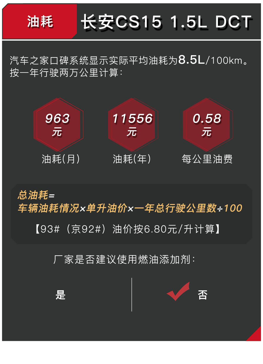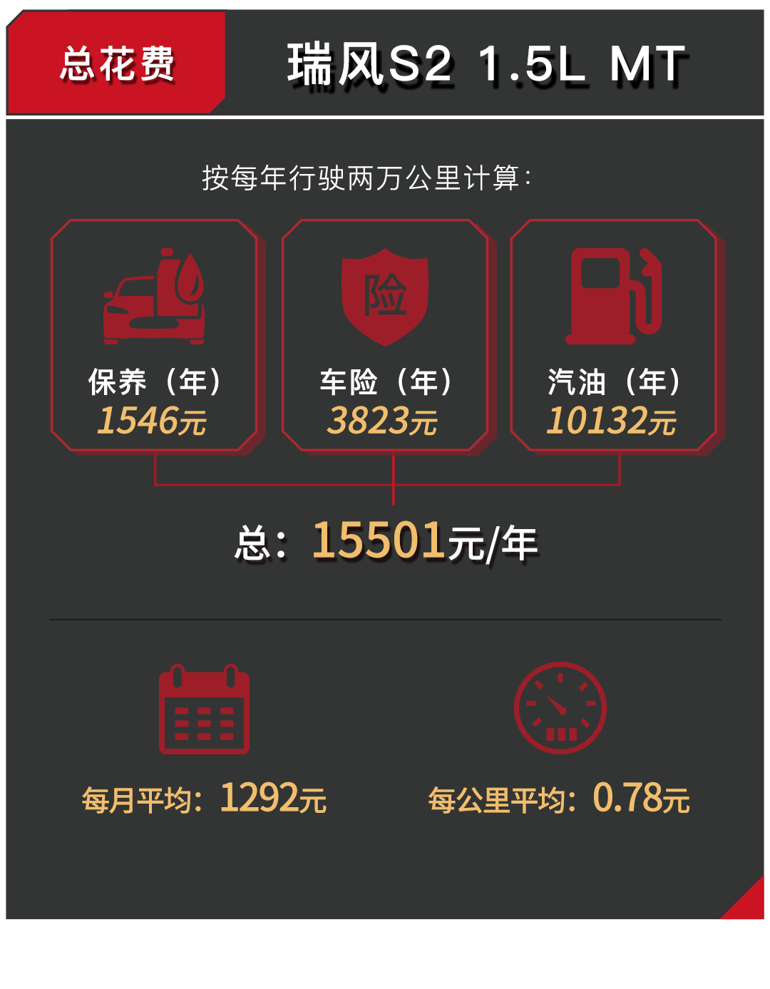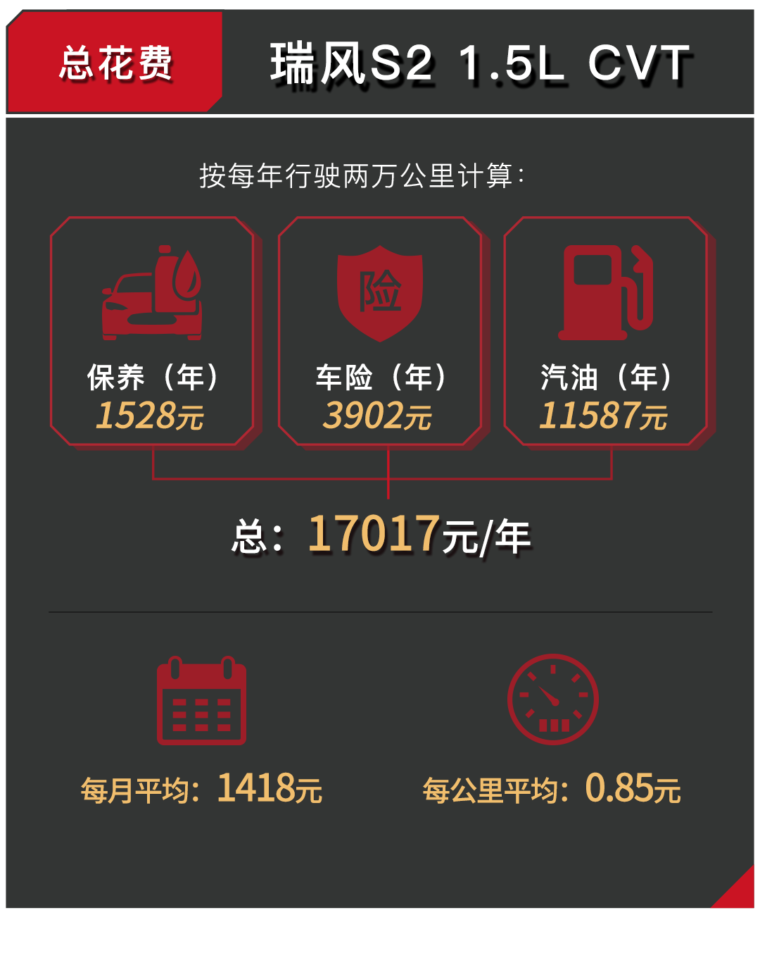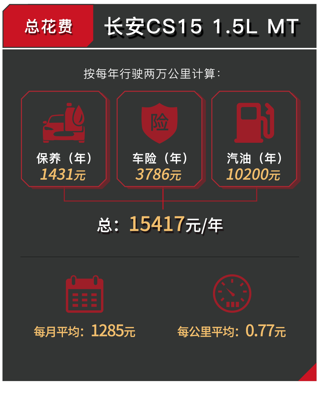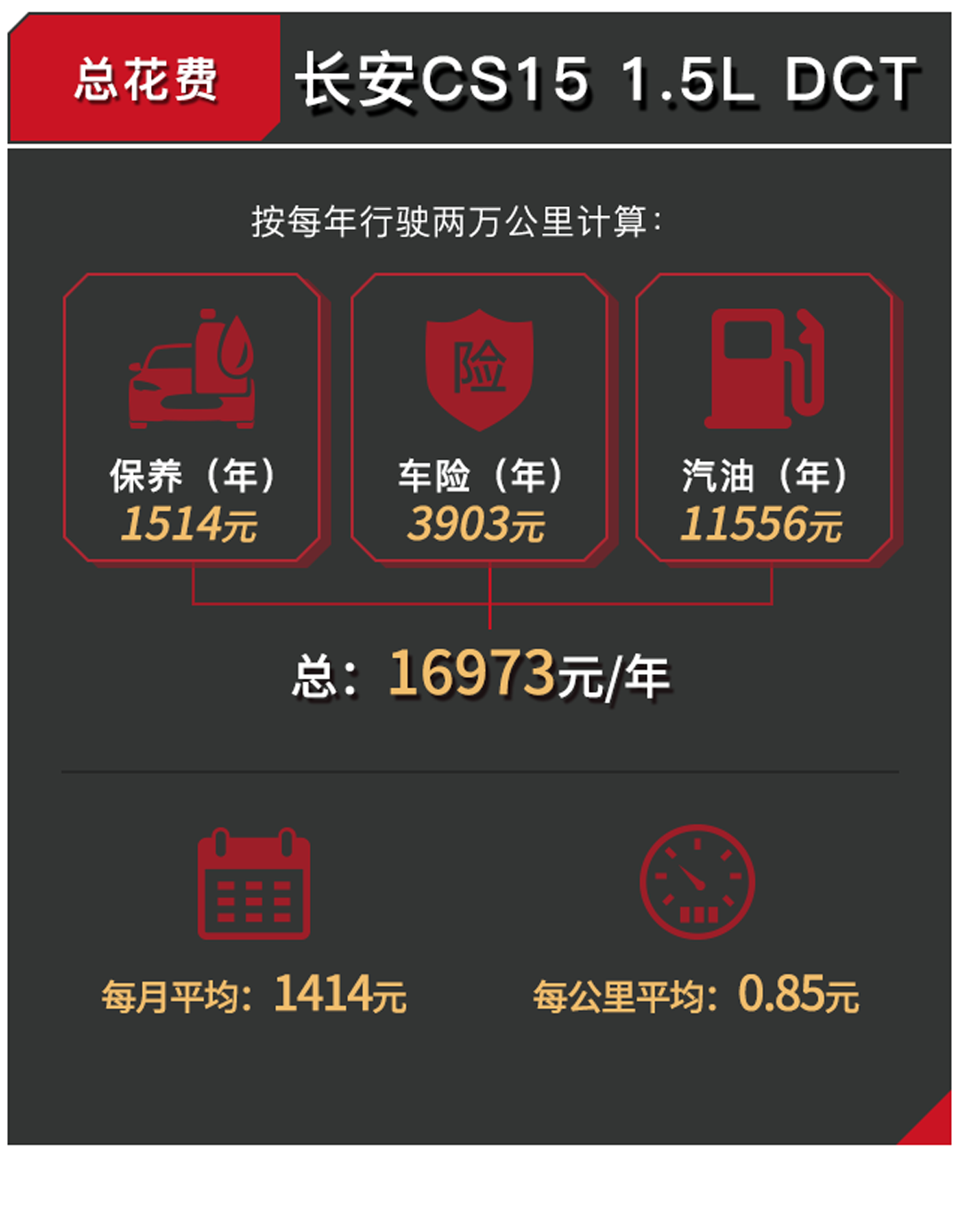 可以看到,CS15的手动挡车型与哈弗H1和瑞风S2在用车成本上的差距并不太大,但是CS15依旧保留有一点小小的优势。而对于自动挡车型,CS15在保养和油耗上同样小有优势。