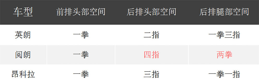 空间肯定是这次对比的关键,从空间测试结果来看,作为旅行车的阅朗更有优势,特别是后排,由于瓦罐式的车厢设计,后排能腾出比英朗更大乘坐的空间。