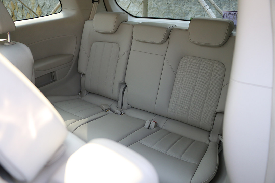 传祺GM8第二排两个座椅中间的过道设计得还是比较宽大,第二排乘客通往第三排基本没什么阻碍。在这次体验中,值得一提的是第三排座椅的坐垫非常非常软,腿部空间也非常足够,得益于MPV的设计,它的第三排乘坐的头部空间会比7座SUV大得多。