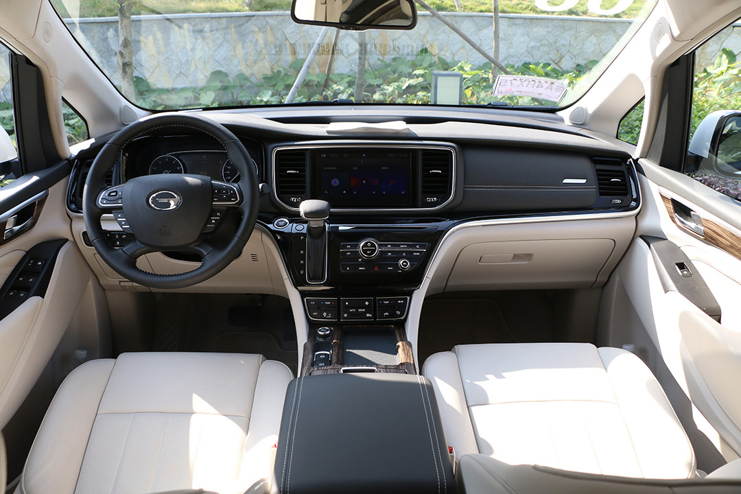 内饰中控上搭载10寸液晶中控大屏和7寸液晶仪表屏,变速箱换挡杆位置与其他MPV设计一样位于中控台上,为下方腾出更多空间。