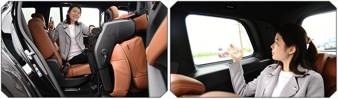 第三排的空间完全可以轻松容纳下两个成年人,虽然第三排车窗不能下降,但是视野还是很开阔,并且可以负压换气,所以乘客也不会产生压抑感。