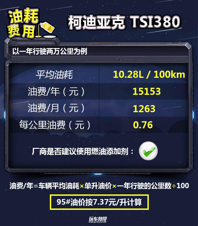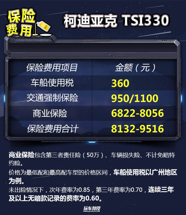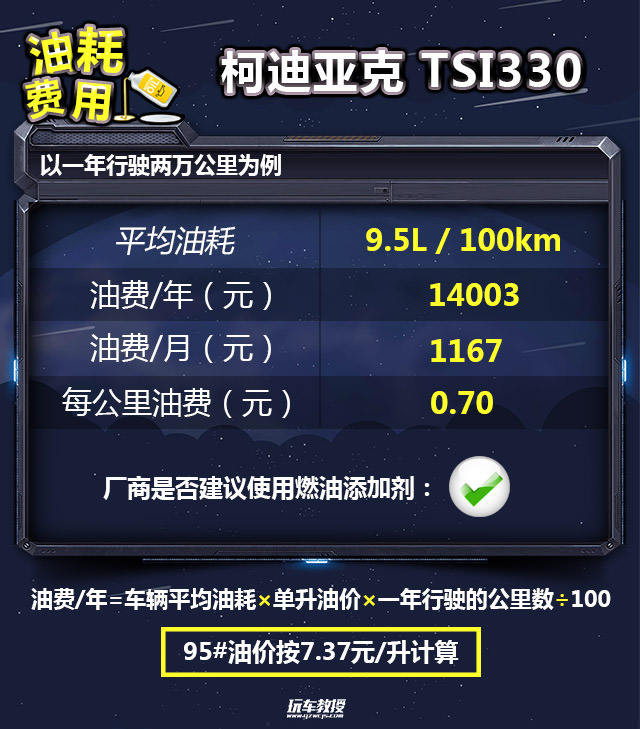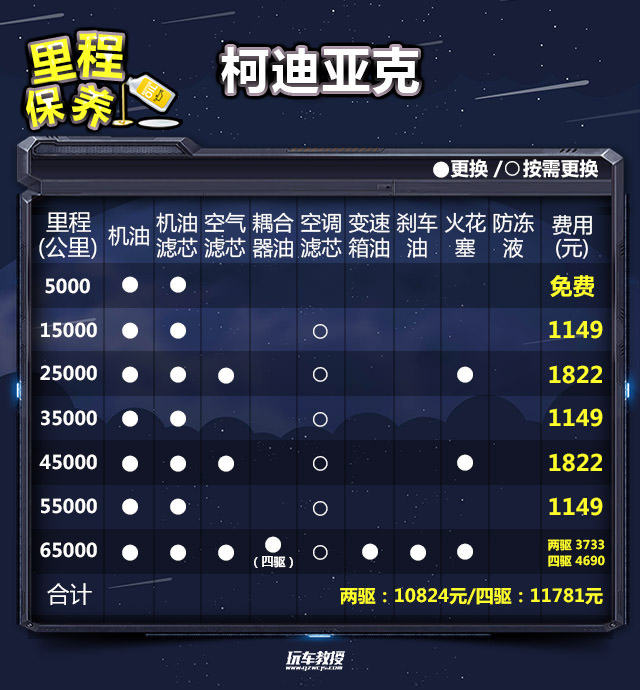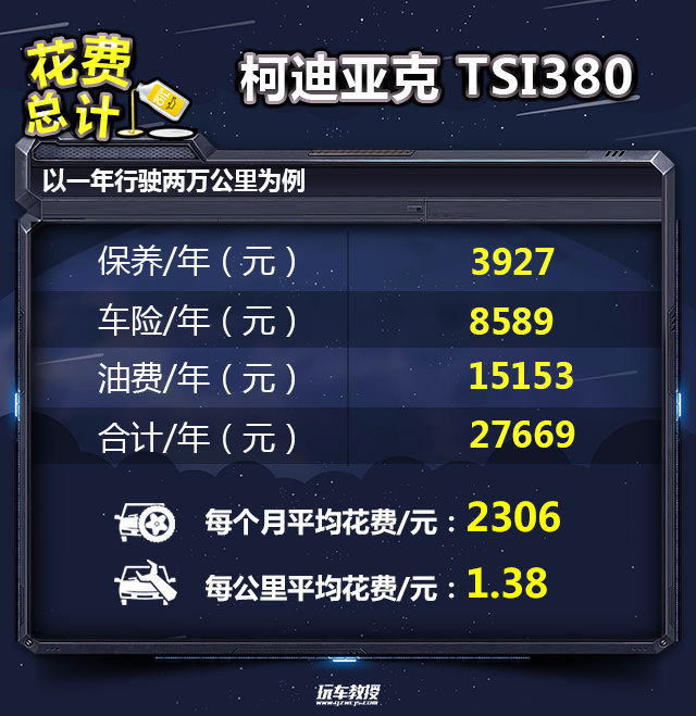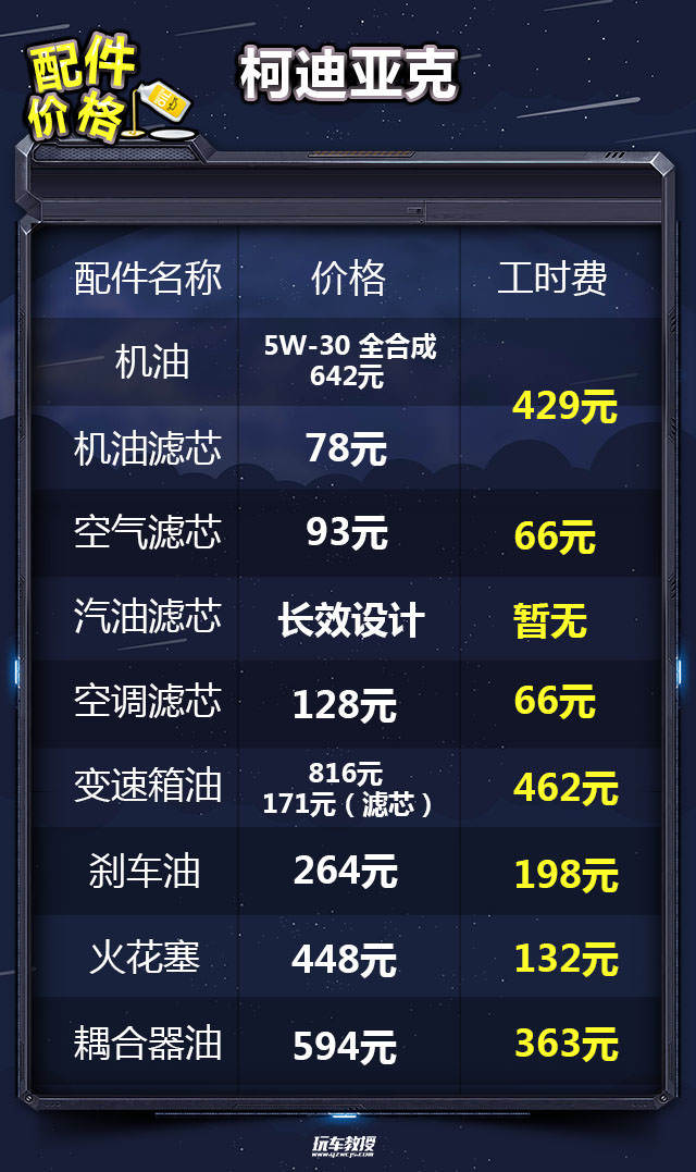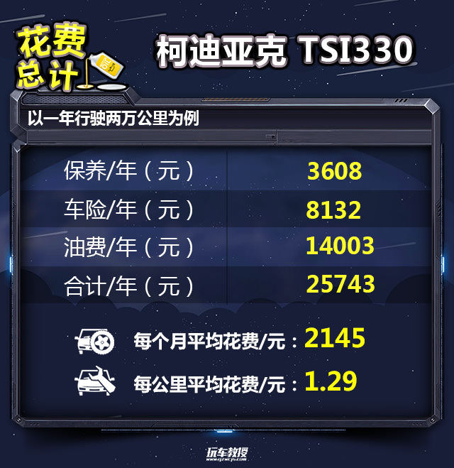 教授总结:尽管保养间隔为10000公里/次,但是柯迪亚克的保养费用还是比较贵的,表现稍低于探界者。以一年行驶两万公里为例,TSI330车型年花费25743元,月花费2145元;TSI380车型年花费27669元,月花费2306元,整体花销处于同级别中等水平。