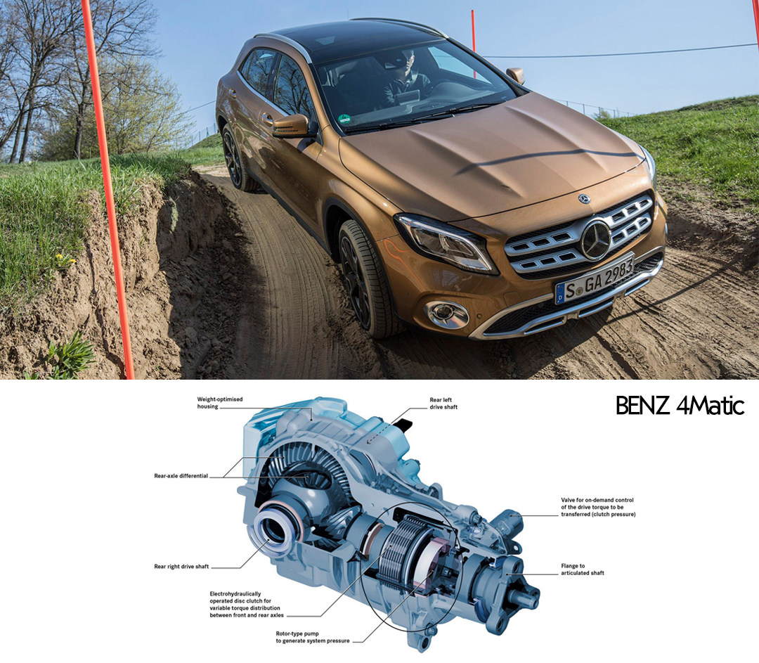 一些现代的适时四驱系统则使用多片式离合器用于控制后桥的扭矩输出,譬如奔驰GLA上的的4Matic四驱系统。