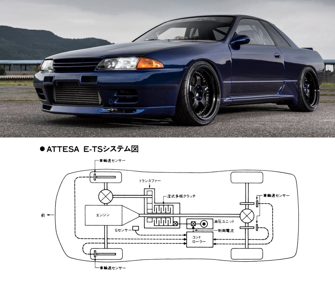 日产战神GT-R(R32)绝对算是电控多片式离合器四驱系统的始祖,其Attesa E-TS四驱系统可以让前轮扭矩输出在0:100到50:50之间切换。