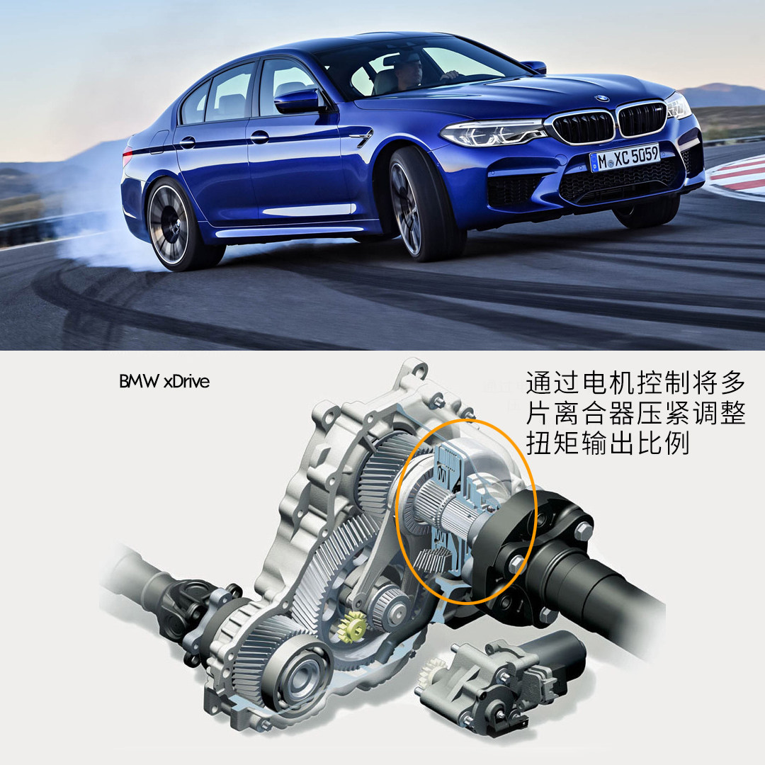 宝马x Drive系统可以通过电机控制多片式离合器压紧来调节前后扭矩比例。