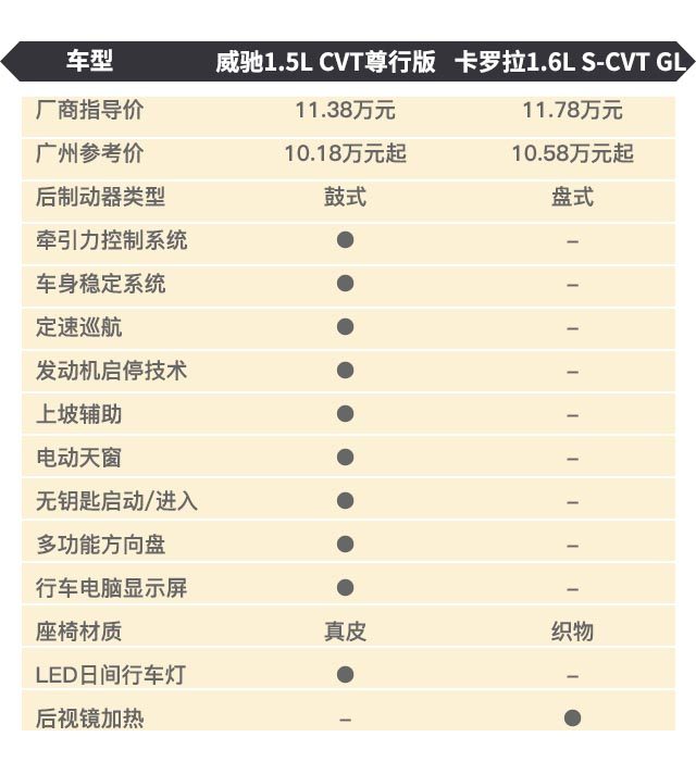 我们选择了11月国内汽车销量排行榜前十的丰田卡罗拉作为对比对象之一,而它的对手便是同门师弟丰田威驰了。在十分火热的10万元购车层次,我们既可以买到2017款威驰的顶配,也能买到最便宜的2017款卡罗拉自动挡车型。