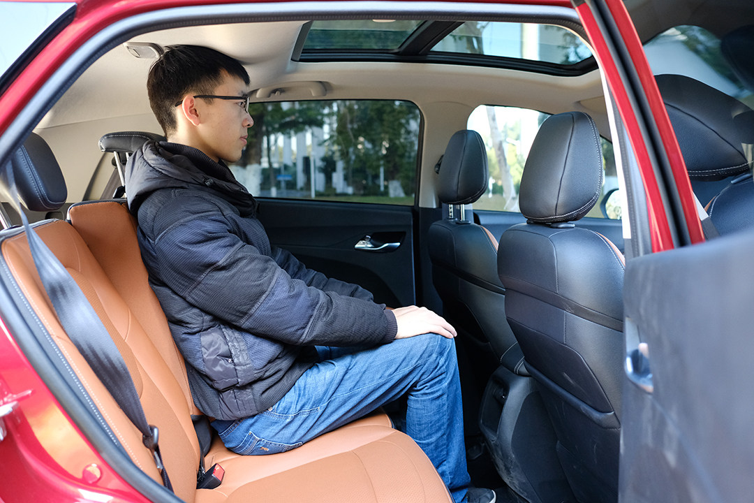 除了放倒后较大的后备箱之外,510的乘坐空间表现也是挺不错的,座椅规格也比较宽大,再加上可以调节靠背角度的后排以及较大的全景天窗,510的乘坐感受还是蛮舒服的。不过不得不说的一点就是510的后排中间座位头部空间偏小,身高174cm的体验者坐在后排中间座位头发就已经扫到了车顶,看来他要坐510后排中间位置的话得先剃个地中海发型,以免头发蹭脏车顶~
