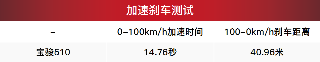 不过相比较略有争议的隔音表现来说,510自动挡的刹车表现就真的不错了,实测40.96米的刹车对于一台7万块的车来说属于很不错的水准了,刹车的瞬间减速G值可以达到-1.1g,而且减速度十分稳定,刹车曲线也十分平滑,这样的表现丝毫不逊色于20万甚至更高级别的车型。