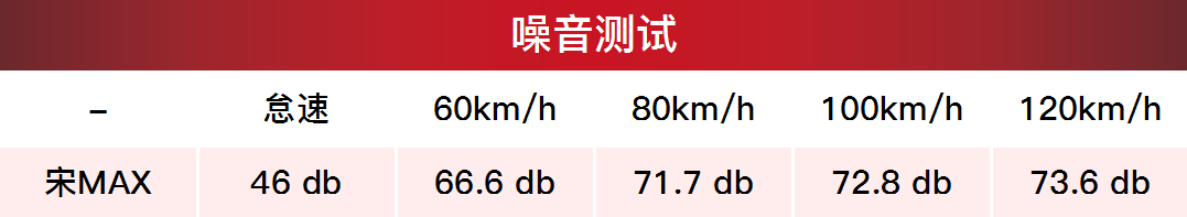 作为一款MPV车型,宋MAX对于舒适性的考量还是很多的,比如说使用了偏向舒适和静音性的锦湖舒乐驰轮胎,在整车的NVH上也花了较大功夫,不过最终的效果却并不怎么好,在各个速度下宋MAX的噪音数值都比宝骏510更高,主观感受上宋MAX的风噪较大,发动机负载时的噪音也比较难听,虎哥从公司开去大学城的路上在副驾睡觉的摄影师下车第一句话就是:“我觉得这款车的隔音真不咋地”。