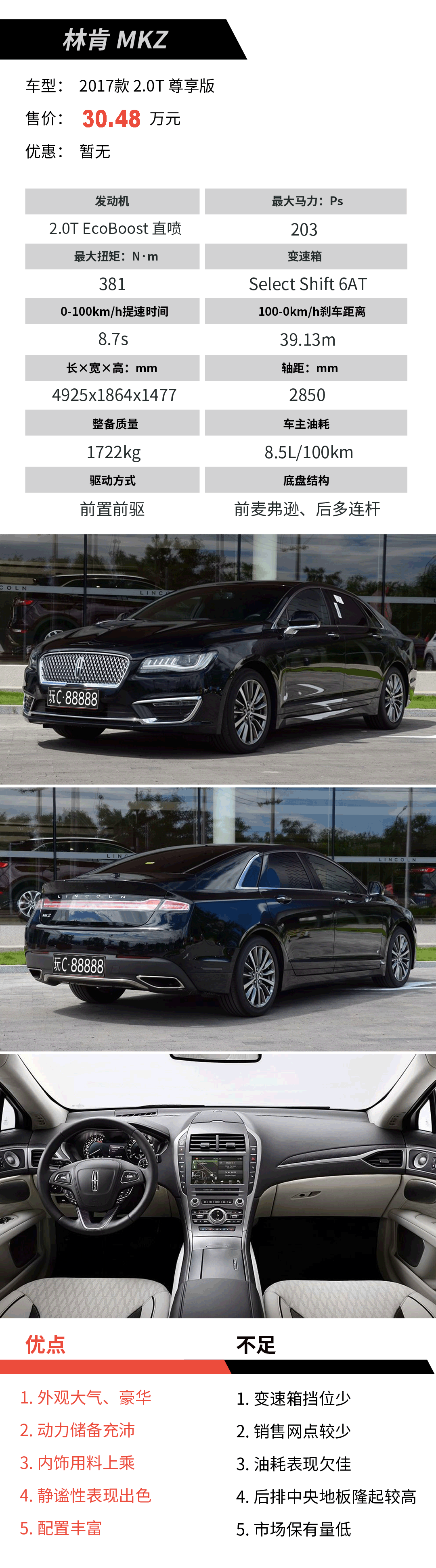 全新家族前脸不怒自威,辅以充满仪式感的迎宾灯、密码锁,奢华尽显。因平台化被吐槽换壳蒙迪欧的MKZ,教授表示不忿,“区别对待”的调校、CCD可调阻尼营造的行驶质感足以让蒙迪欧望尘莫及。轻量化水平欠佳,别因MKZ抢眼账面参数而对其动态表现过分期待。