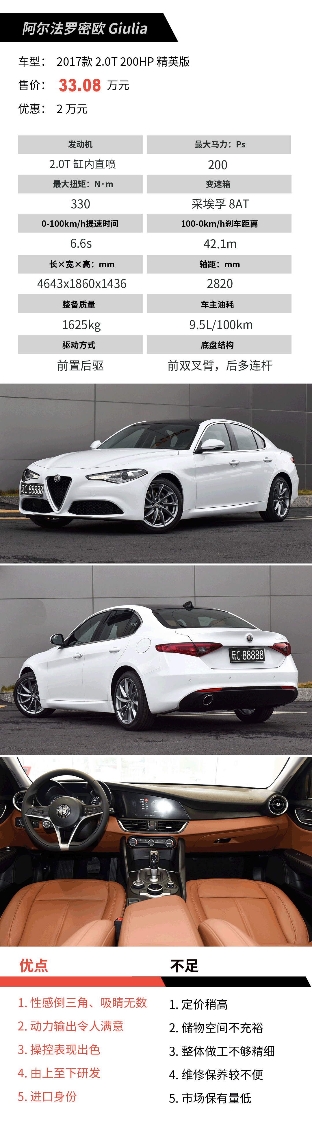 性感倒三角描画出的愤怒小鸟前脸让人过目不忘,上来便大打重新定义运动中级车旗号,但配备的四季轮胎难以服众,即便配上大陆电控制动系统,制动表现仍旧不尽人意。此外,FCA集团粗枝大叶的调性能在其不拘小节的装配、拼接工艺上得以体现。