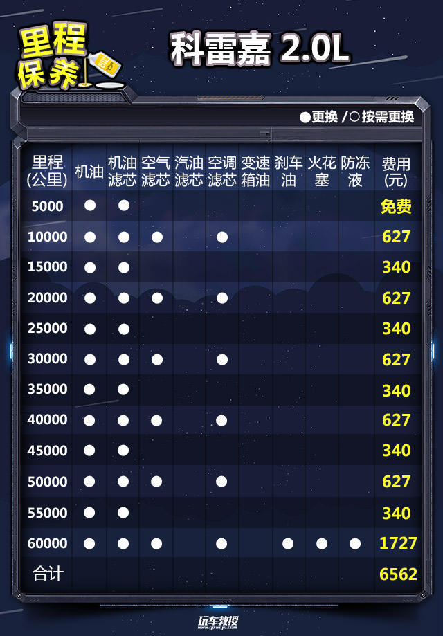 教授总结:从结果上看,科雷嘉的保养费用不算贵。在使用矿物油的情况下,行驶6万公里的保养总费用为6562元,相比逍客的5318元并没有贵太多,但是雷诺的售后网点的数量就不如日产了,这也很大程度限制了科雷嘉的销量。以一年行驶2万公里为例,科雷嘉年花费21567元,月花费1797元,还是比较正常的。