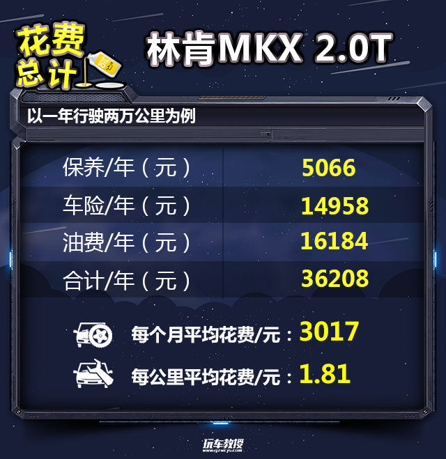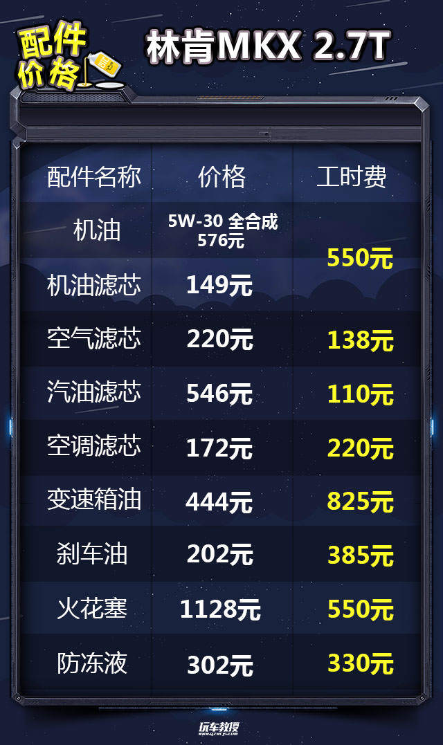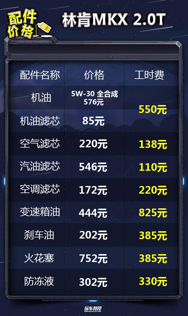 教授总结:由于是进口车型的原因,所以林肯MKX的配件价格会比较高,因此整个保养成本会偏高一些。以一年行驶2万公里为例,2.0T车型年花费36208元,2.7T车型年花费41010元,考虑到进口车型的因素,这样的表现还是可以接受的。
