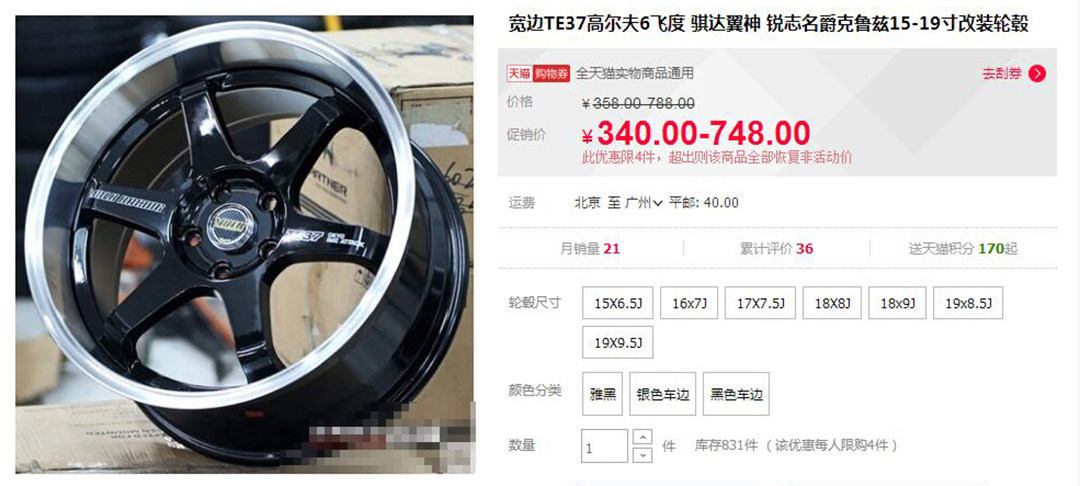 TE37山寨版单品只需要340元一条。关键是除了第一代TE37(已绝版)以外,