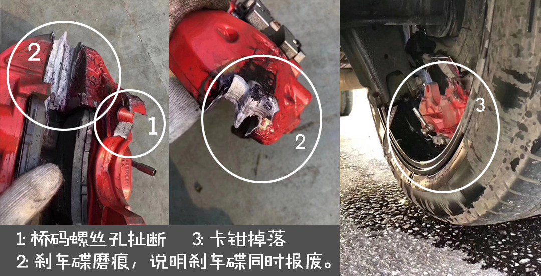 由于刹车卡钳本身是一个承受高压和高热的部件,在高温和高负载下,品质较差的刹车卡钳会导致内部油路失效,活塞卡死,异常变形等,轻者会导致刹车抖动不线性,严重会导致刹车失效。刹车一瞬间刹车盘对刹车卡钳施加的强大扭矩,也很容易导致材质和耐热性都比较差的山寨刹车卡钳合头部分爆裂而导致整个刹车卡钳掉落,严重影响行车安全性。