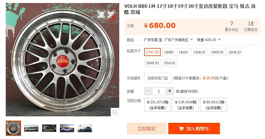 山寨BBS LM 17寸产品只需要不到700元一条,价格相比正品差了十几倍。