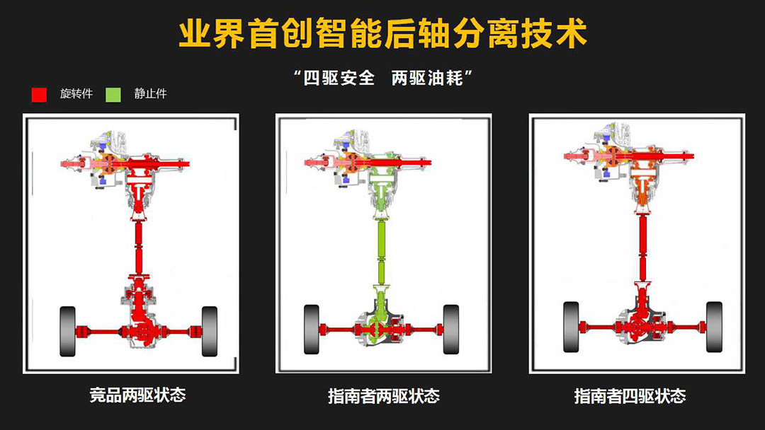 但指南者的前端PTU(助力器,充当一个分动箱的作用)和后端RDU(后驱单元)会在两驱行驶状态下时完全断开与传动轴和差速器的齿轮之间的连接,让它们都处于静止状态,以此最大限度的节省油耗。