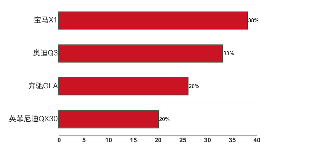 也有部分人考虑过GLA和QX30等车型,这两款同平台同动力,会买CDX的消费者应该是比较追求独特个性的,QX30应该会更适合,GLA占比高的原因大概是品牌天生的优势。
